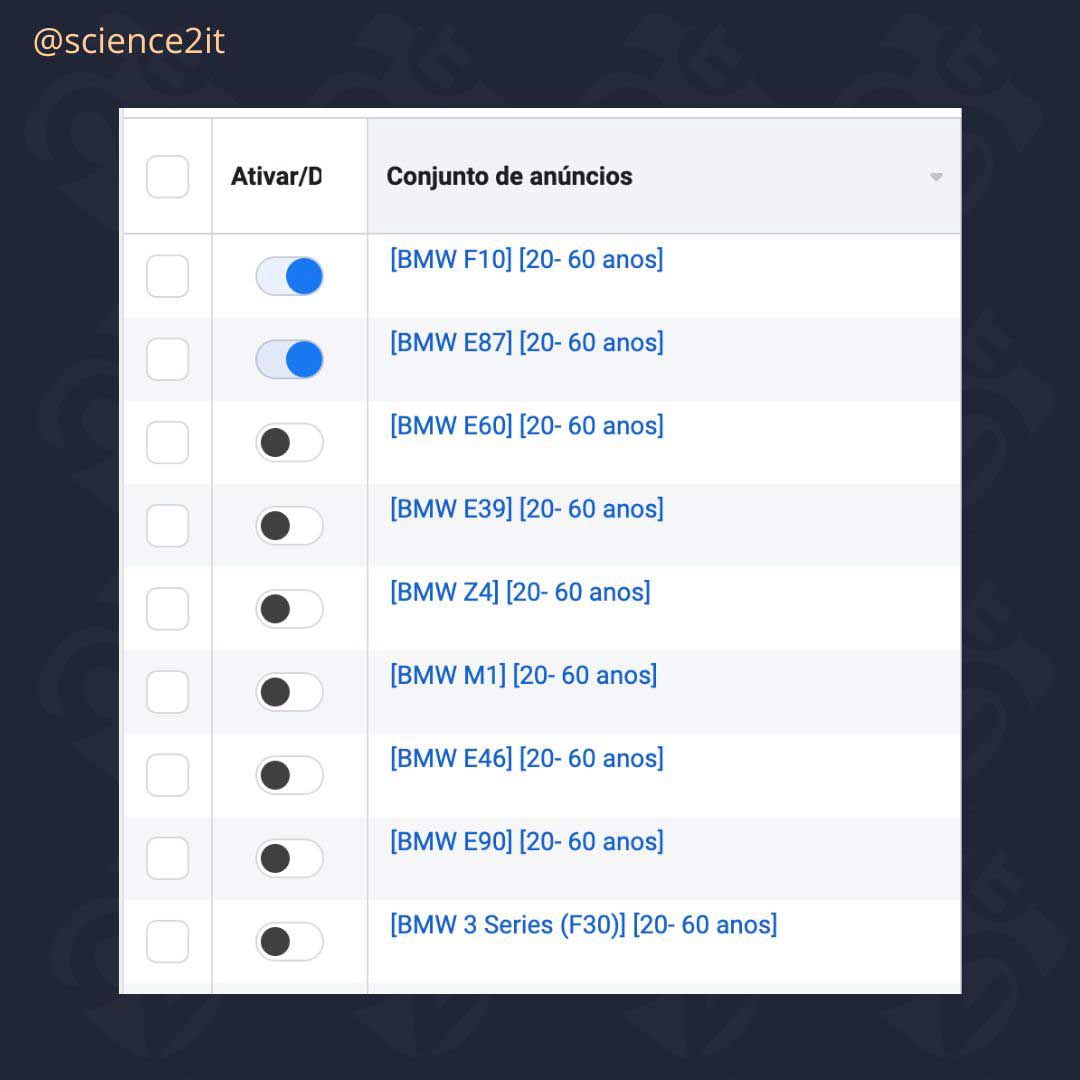 Conjunto de anúncios 2 [BMW F10][36-51] – Orçamento [$ 7] – Resultado [7 vendas]