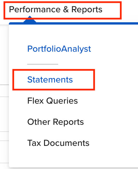 No menu da web app da Interactive Brokers, vamos a Performance & Reports > Statements