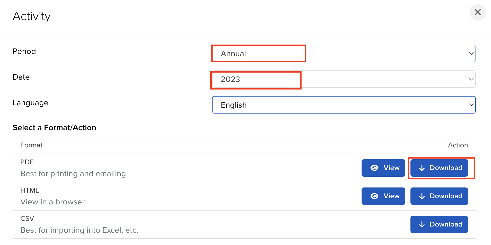 Selecionamos o Period, neste caso pretendemos o relatório anual e em Date colocamos o ano.