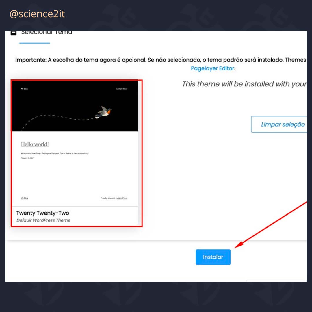 Escolhe o tema Twenty Twenty-Two e clique em Instalar.