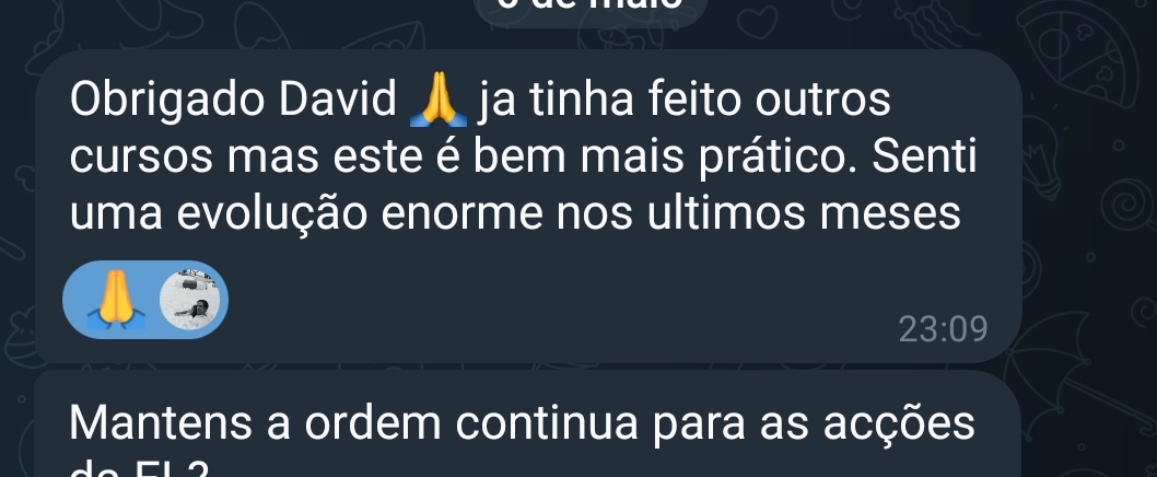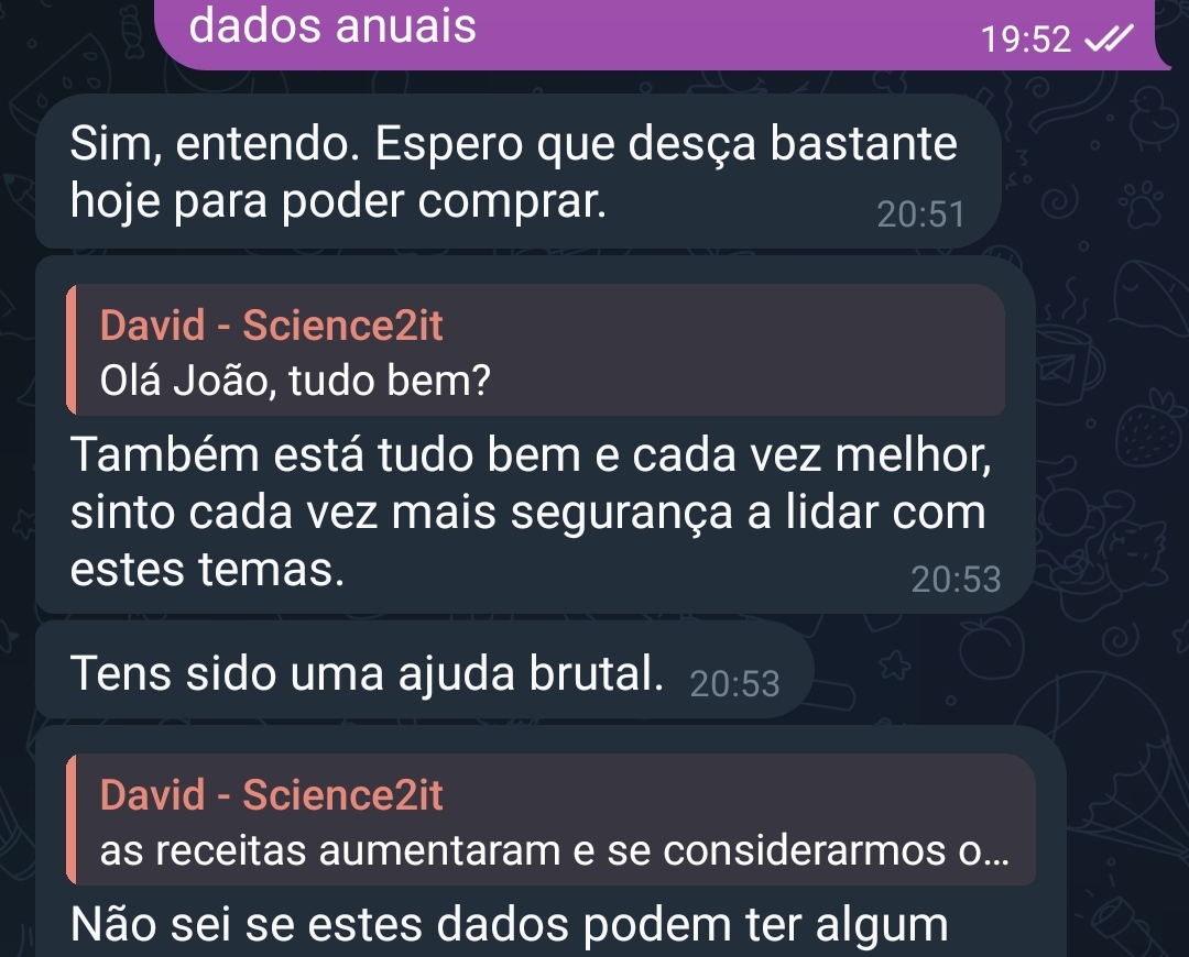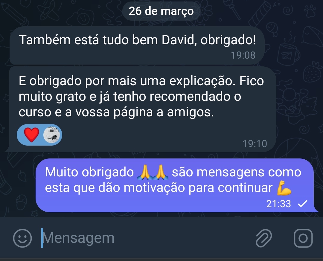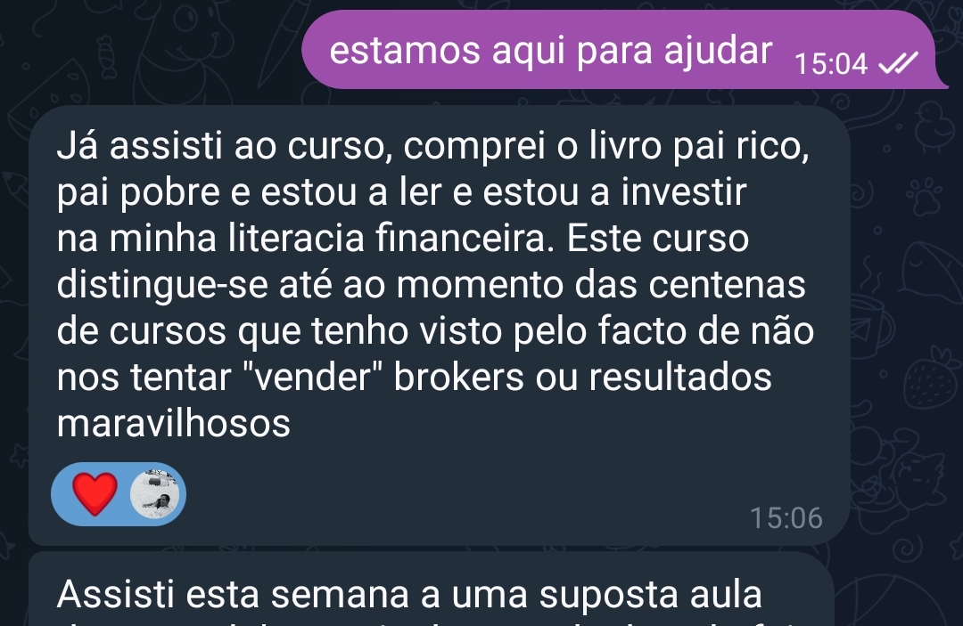 Poderás partilhar as tuas dúvidas, objetivos e conquistas com outros investidores que fazem parte da comunidade privada no Telegram.