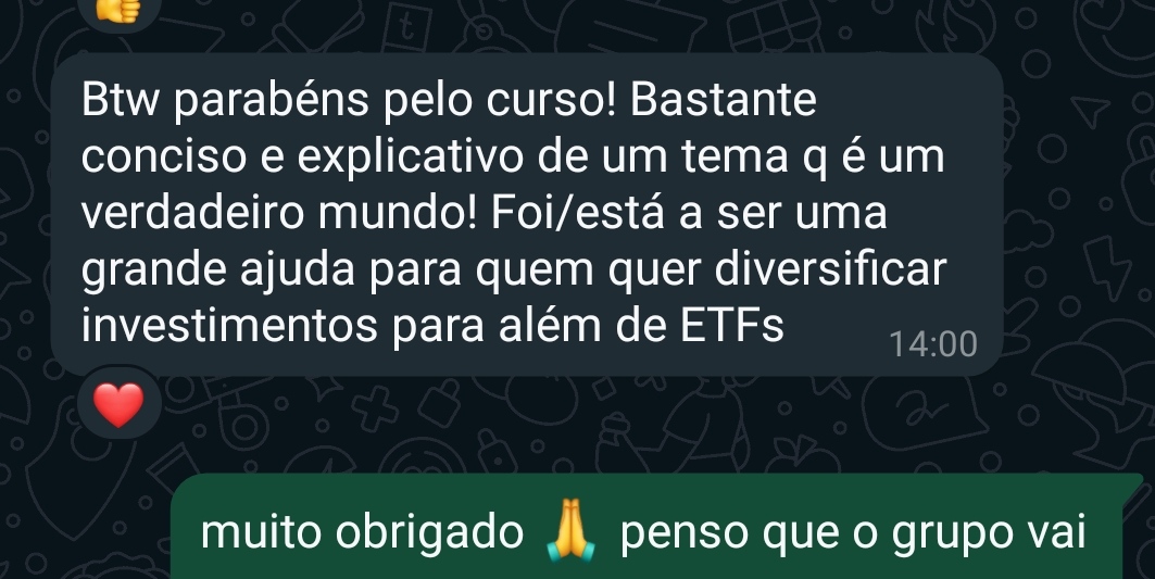 Bónus 6: Acesso a grupo do Telegram com comunidade de investidores.
